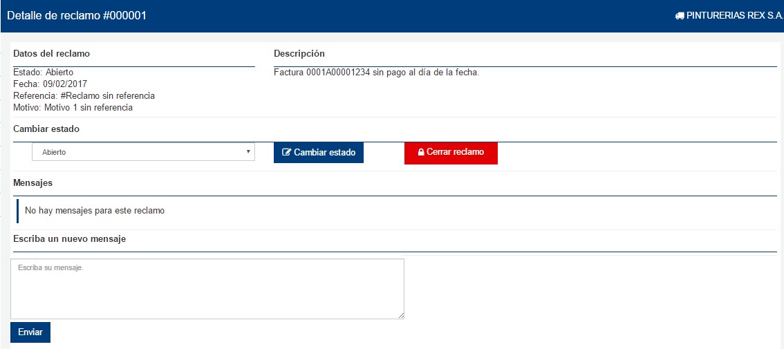 A través de esta herramienta podremos visualizar aquellos reclamos generados por el proveedor desde el portal externo, con un número de identificación, estado y motivo. También se utilizara como canal para enviar reclamos al proveedor por parte de la empresa en caso de ser necesario.